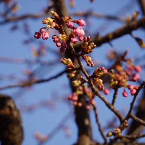 公園の河津さくらも大分蕾が膨らんできたよ。